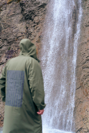 Atstarojoša lietus jaka - Melnas svītras / Khaki